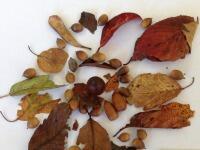 落ち葉や松ぼっくり、どんぐり、クヌギなど、さまざまな秋のものを、紙の上に並べていくと☆