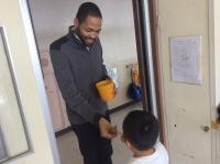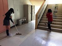 ボランティアで昇降口の掃除をしてくれた人が。