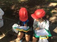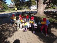今日は、図工の作品に使う落ち葉を拾いに、校庭や城址公園へ!
