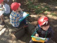 落ち葉のこすり絵をしました。