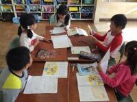 大きなグループを作り、みんなで話し合いながら、課題に取り組んでいます。