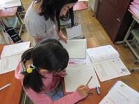 答えの丸つけだけではなく、ていねいに教えている姿もありました。
