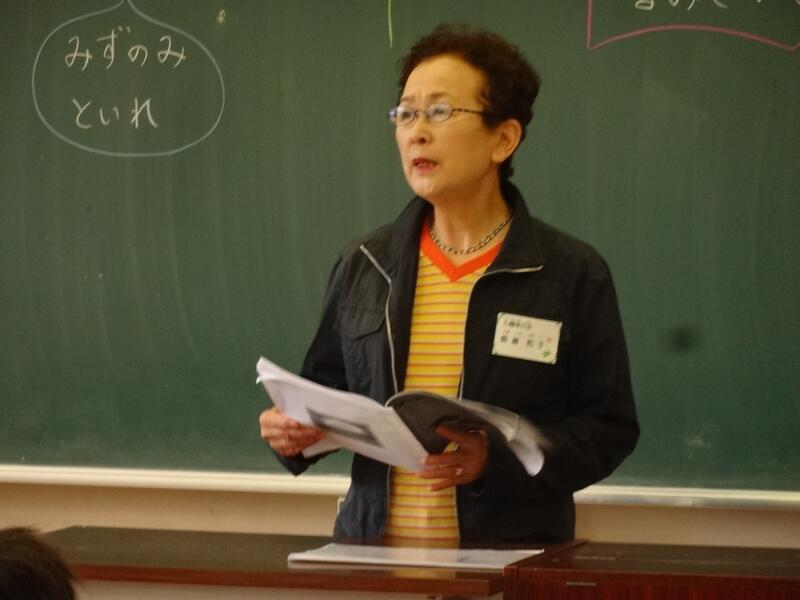 子どもたちは、九輪草の会の方々のしっとりとした語りに引き込まれ、熱心に聞いていました。