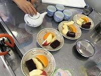 今日は家庭科でお茶を入れる勉強をしました。(おやつがたくさんありますが・・・笑)