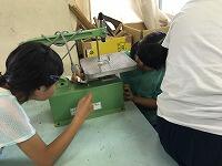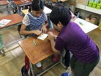 材料を配って、どうすればメトロノームになるのかをみんなで協力して考えました。
