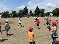 休み時間、昼休みに5年生が中心となり、ざまざまな学年とドッチボールをしていました。
