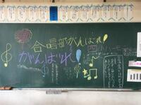 栃木市音楽祭にでない児童が、朝練習していた合唱部の人たちにメッセージを書いていました。