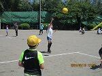 昨日の雨天とは打って変わって、暑い日差しが降り注ぐ中、なかよし班活動が行われました。普通のドッジボールとルールは同じですが、今回は当たったらその場で自己紹介をします。所属学級、名前、好きな○○をグループのみんなに言いました。