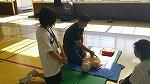 消防隊員の皆様による実演の後、職員がレクチャーを受けながら実践しました。