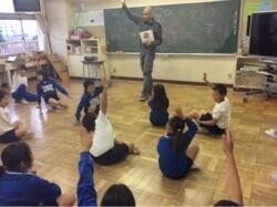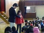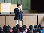 校長先生からは、「1年間のまとめと次の学年への準備をしっかりしましょう。」というお話と、今年は「光の年」と言うことで、昨年徳島で全児童生徒に配られたという新聞の号外を見せながら、青色LEDでノーベル賞を受賞した記事についてのお話があり、「好きなことをとことんやる」ことや「今までに当てはまらないことを大切にする」ことなどを教えてくださいました。