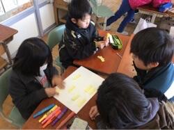 まず4年生は、冬休みの思い出をおしゃべりしました。少し会ってなくても、いろいろな話をすぐにできるのは、良いところですね。