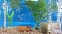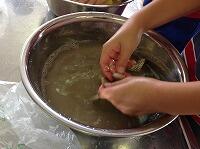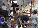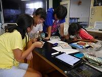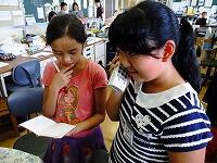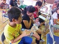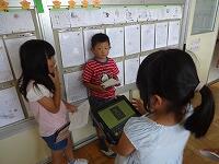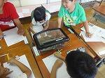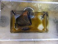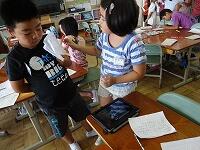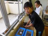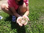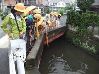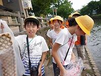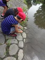 初めて成功して喜んでいる児童、友達にザリガニのいる場所を教える児童、じっくりザリガニがくいつくまで待つ児童。教室では、見られない姿がみることができました。釣ったザリガニの雄雌の分け方を子どもから教えてもらいました。そして、ザリガニは教室で飼うことにしました。