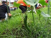 5月に植えた農園のキュウリが、大きくなりました。今日、初めて3本、収穫できました。
