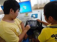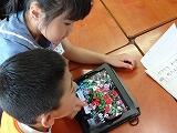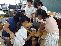 それぞれのグループで異なる場所を探検し、その後、探検したことを伝え合って、地域に親しみをもつことがねらいです。今回は、友達に伝えるときに使用する画像を撮るために、4人で1台ずつ、iPadを持って行き、写真を撮らせていただきました。子どもたちも、初めての校外での取材に大はりきり。みんな真面目に、友達に伝えるための写真を撮っていました。ふざけた写真を撮った人なんて一人もいません。生活科の学習で行っていることをちゃんとわきまえて取材できたこと、本当によかったです。取材の様子です。