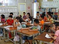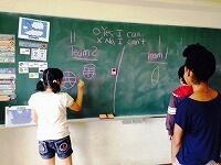 教室の後ろに、「言語コーナー」があります。