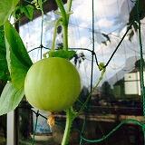 ベランダの野菜の収穫、第1号。もうすぐ持って帰れそう。