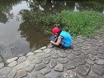 ビオトープでザリガニつりをしました。