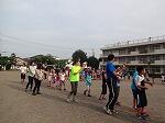 イルカになったつもりで、順番にコースロープを飛び越えます。