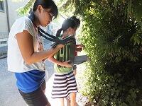 次の日は、虫かごと図鑑を持って外に出ました。