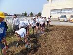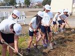 スコップでよく掘り返し・・・ たくさん生えていた雑草を抜き