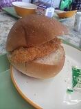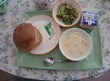 今日の給食は … フィッシュバーガー ゆで野菜 よくばりスープ です!