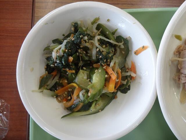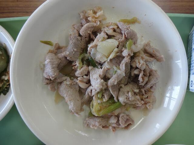 今日は塩だれ焼き肉給食です。豚肉はレモン・ネギ・ニンニク・さとう・ごま油・豆板醤・塩で作ったタレに漬け込みました。きゅうりや人参、もやしの中華和えはさっぱりとしています。春雨スープにはちんげんさいや竹の子も入っています。