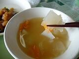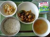 鶏肉の隠し味の生姜が食欲をアップさせてくれます。味噌汁はかんぴょうと人参入りです。