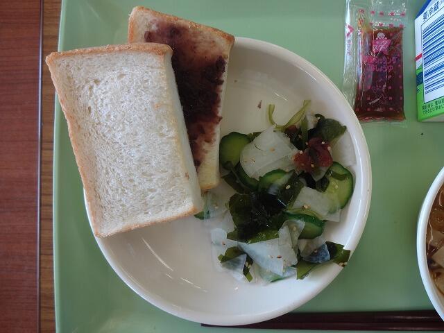 小倉トーストと海藻サラダです。昆布だしのきいたおつゆが美味しいきし麺です。
