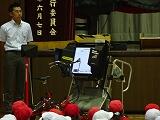 特に小学生は飛び出し事故が多いので注意が必要とのお話がありました。常に気を付けたいのは「TMM」:止まる、見る、待つの3つとのことでした。自転車シミュレーションなどを代表児童が体験し、理解が深まったと想います。