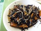 今日はカミカミメニューの和食版です。ごはん、牛乳、鮭の塩焼き、ひじきの煮物、豚汁です。
