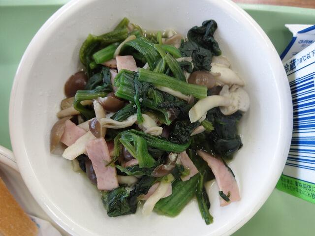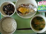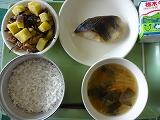 切り干し大根と椎茸の煮物、今が旬のあじを焼き魚に、そして春キャベツと人参、豆腐の味噌汁という、純和風の給食でした。大人の味で美味しい