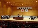 後藤教育委員長あいさつ 吹奏楽の演奏 児童の表彰