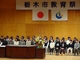 教育祭式典で本校6年生2名が、功労児童として表彰されました。おめでとうございます。教育委員長のあいさつに始まり、来賓祝辞の後、栃木翔南高校の吹奏楽演奏のアトラクションがあり、功労児童生徒の表彰がありました。
