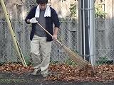 校舎東側の車道(農園、ビオトープまわり)は、昨年業者によって整備され、走りやすくなったところです。一方、車道からはみ出て校庭に入り込む車が後をたたず、50m走路が荒らされる結果になっていました。