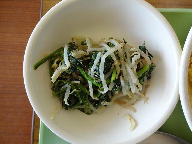 香ばしい唐揚げ さっぱりおひたし 湯葉、かまぼこ入りのすまし汁