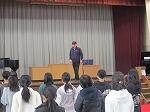 学校で出発式を行いました。子どもたちはすごくいい表情をしていました。