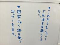 そして帰りの会の「今日のシャワー」では、彼の学ぶ姿勢について、たくさんの「四字熟語」シャワーをかけてもらいました。