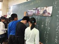 友達のよいところを写真に撮って掲示し、その写真のよさを書く活動をしていました。