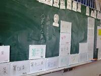今日の主人公は、みんなへのメッセージを黒板に書いておきます。