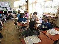 グループで話し合うときには、お互いが話し合いやすいように、体を近づけて行っていました。
