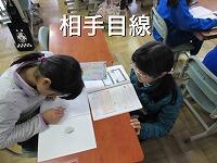 算数で学び合いをしているときに、さりげなく行っていますが、学び「合い」なのでお互いの目線をそろえると、学び合っている様子にあたたかさが増します。