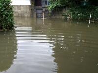 iPadを手に、雨=水の仕業だと思えるところを見つけて、写真や動画に収めました。