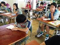 その後の終業式では、クラス代表の作文朗読を、みんなでしっかり見守りました。
