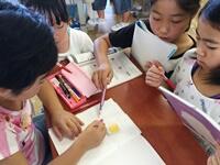 夏休み中に理科教室があり、たくさんの5年生が参加しています。