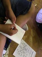 反対側から数字を書いたり、寄り添って考えを確認しながら解き方を伝えたり・・・