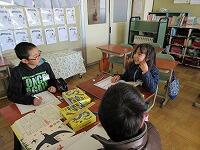 今日の外国語活動は、会話の練習や物語をつくる活動の続きをしました。
