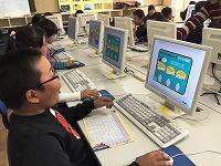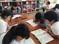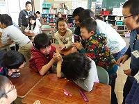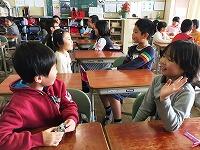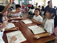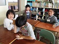 まずは、教室でローマ字の復習。グループで協力してローマ字の学習です。