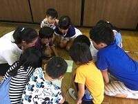 式の後は、なかよし班ごとに夏休みの過ごし方について