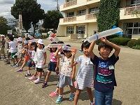授業の最後に、鍵盤ハーモニカの卓奏用ホースを使って、息を吹く練習をしました。