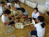 家庭科の時間に、6年生が教室用の扇風機を組み立て、各教室へ配りました。